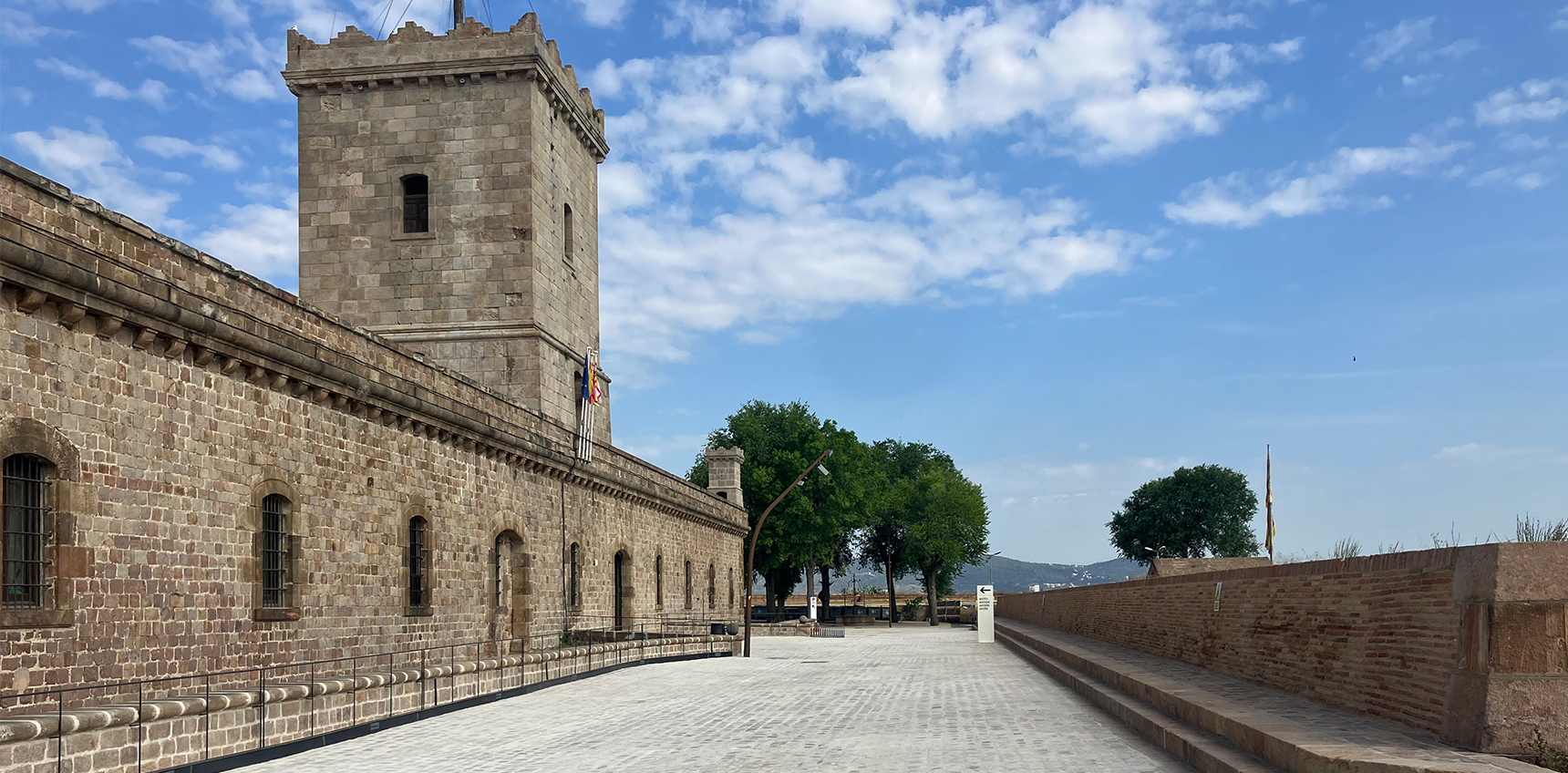 Se han finalizado en junio 2023 las obras de urbanización y restauración del espacio de la Cortina delantera del Castillo de Montjuïc de Barcelona.